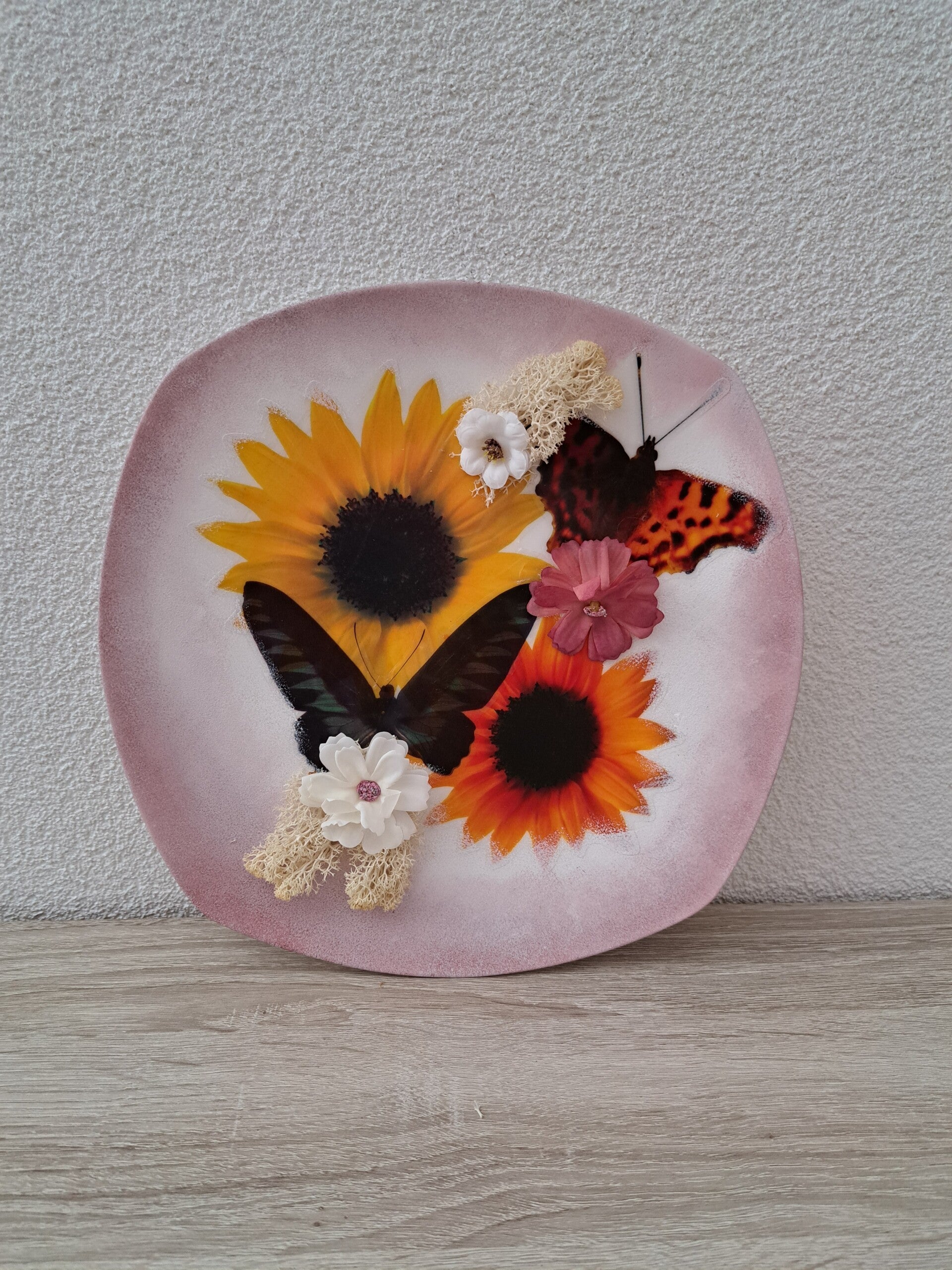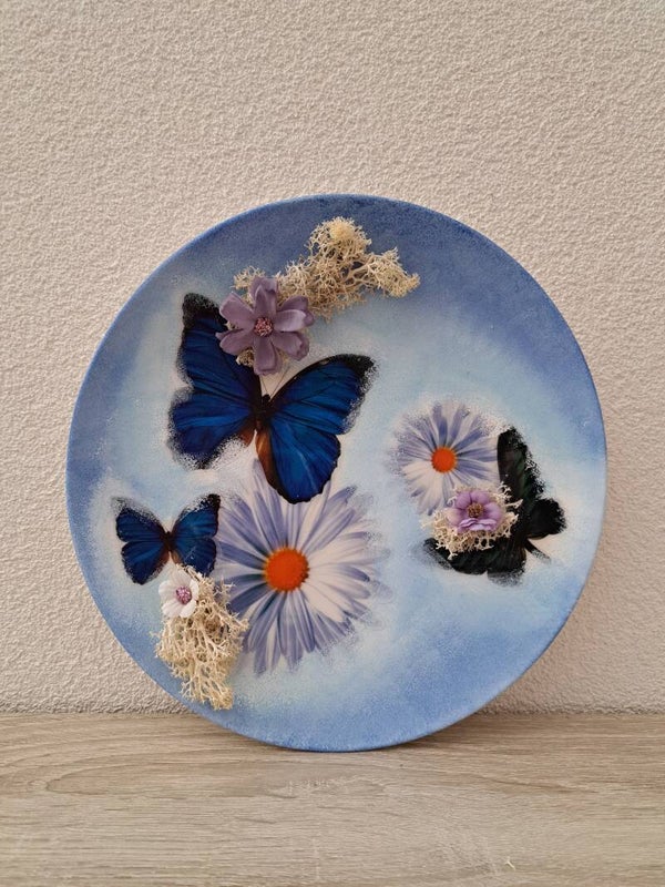 Borden van Aardewerk bewerkt met decoupage.